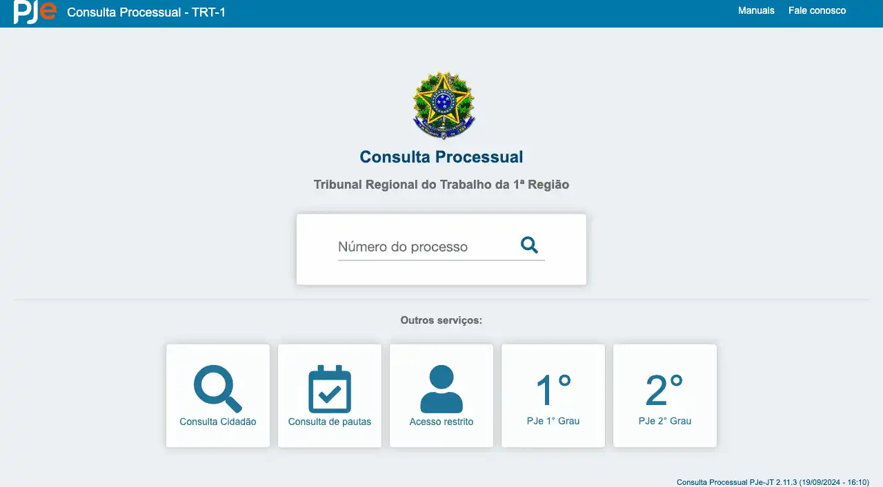 Pode ser usada para verificar consultar informações de um processo jurídico no TRT1.