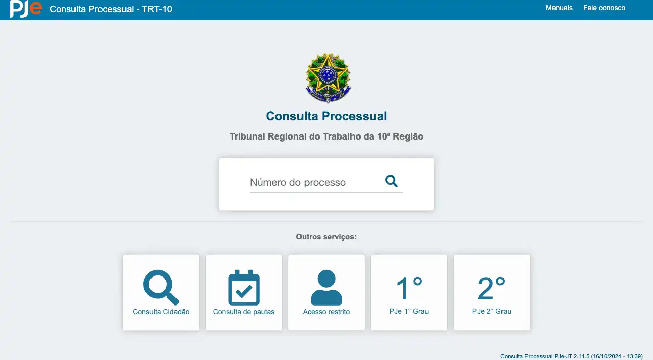 Pode ser usada para verificar consultar informações de um processo jurídico no TRT10.