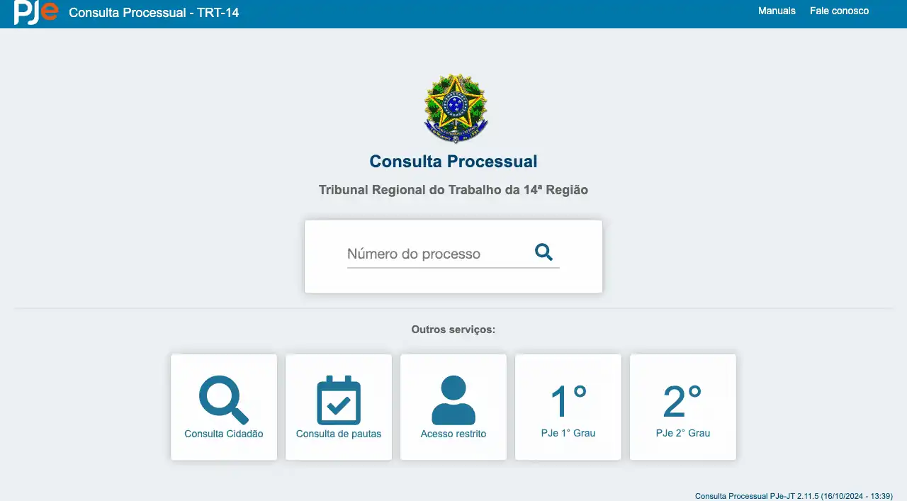 Pode ser usada para verificar consultar informações de um processo jurídico no TRT14.