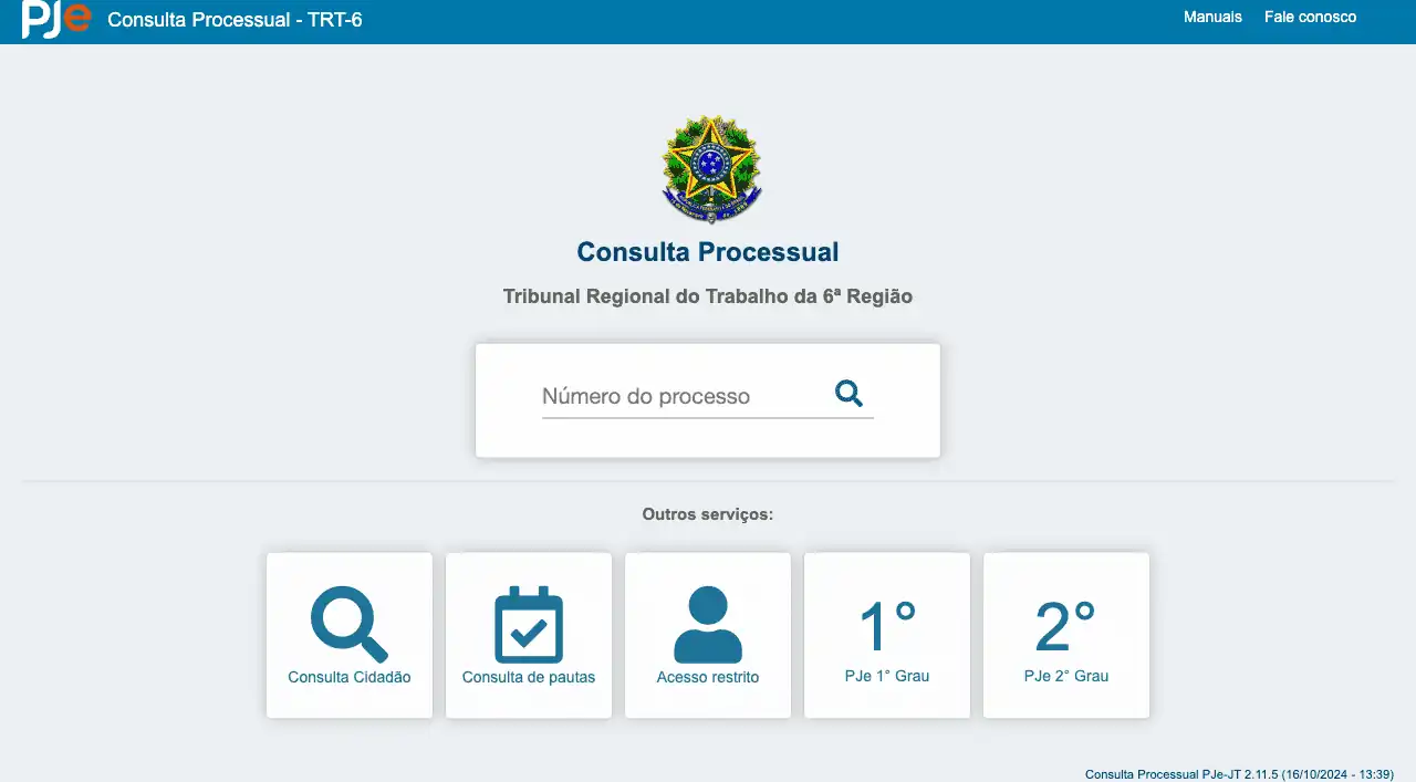 Pode ser usada para verificar consultar informações de um processo jurídico no TRT6.