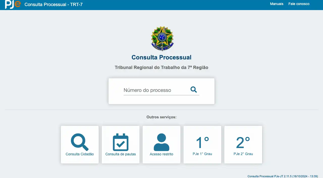 Pode ser usada para verificar consultar informações de um processo jurídico no TRT7.