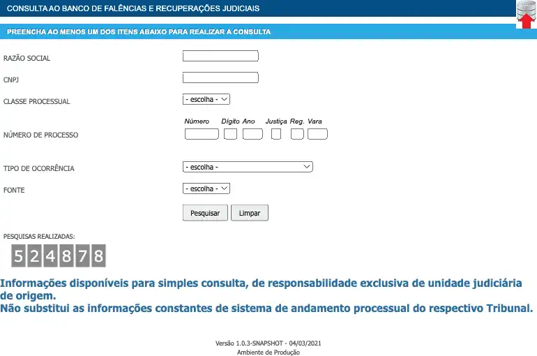 Pode ser usada para obter dados a respeito da decretação de falência e concessão de recuperação judicial