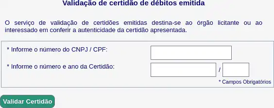 Valida uma Certidão de Débito Trabalhista emitida pelo Tribunal Superior do Trabalho (TST).