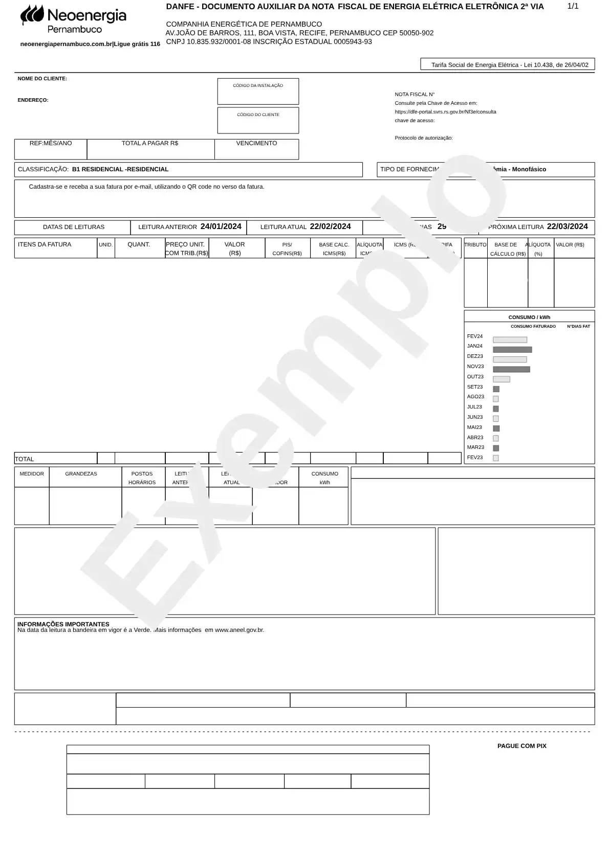 Extrai dados via OCR do PDF de conta de energia elétrica da Neoenergia.